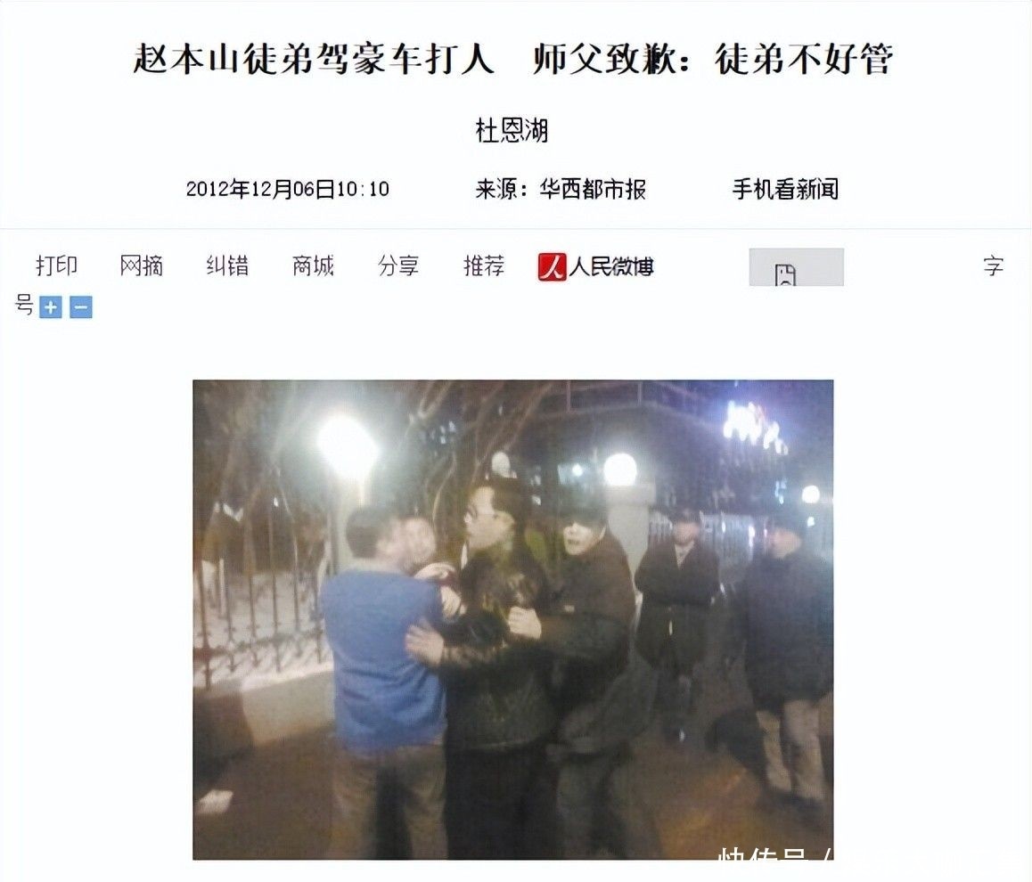赵本山徒弟驾豪车打人 师父致歉:徒弟不好管.华西都市报.2012-12-06